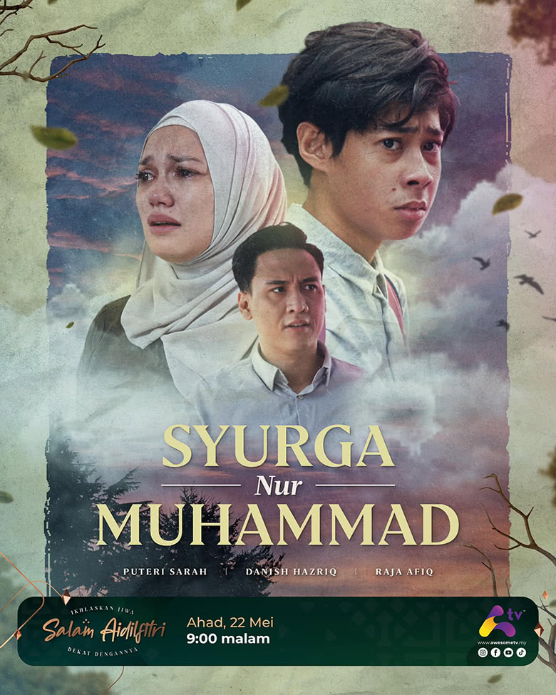 Saksikan telefilem Syurga Nur Muhammad lakonan Danish Hazriq dan Puteri Sarah Liyana di Awesome TV pada Ahad ini pukul 9 malam.